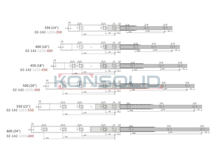 KSLB-150 45mm correderas de extensión completa "push-to-open"