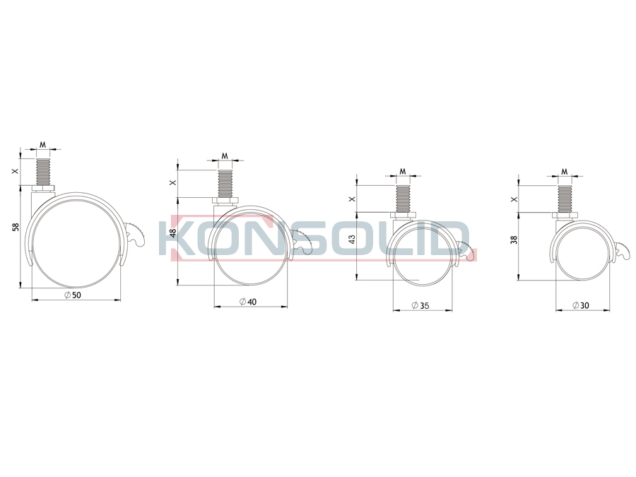 KSLE-600-Sb-50-103050mm, M10x30mm Çap (D): 50 Yükseklik (h): 58 Diş: M10x30