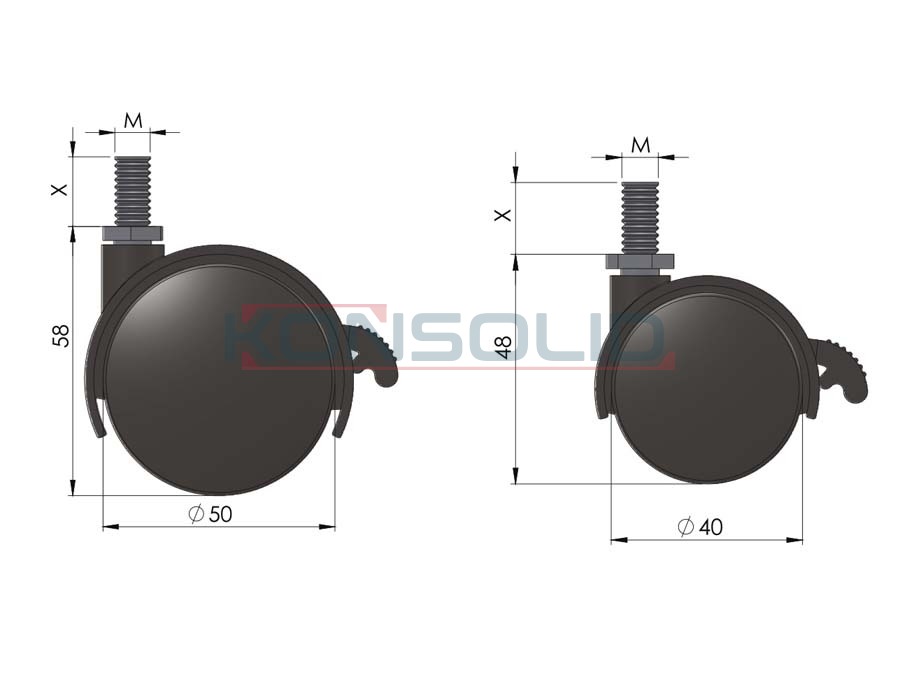 KSLE-600-Sb-50-101550mm, M10x15mm Çap (D): 50 Yükseklik (h): 58 Diş: M10x15