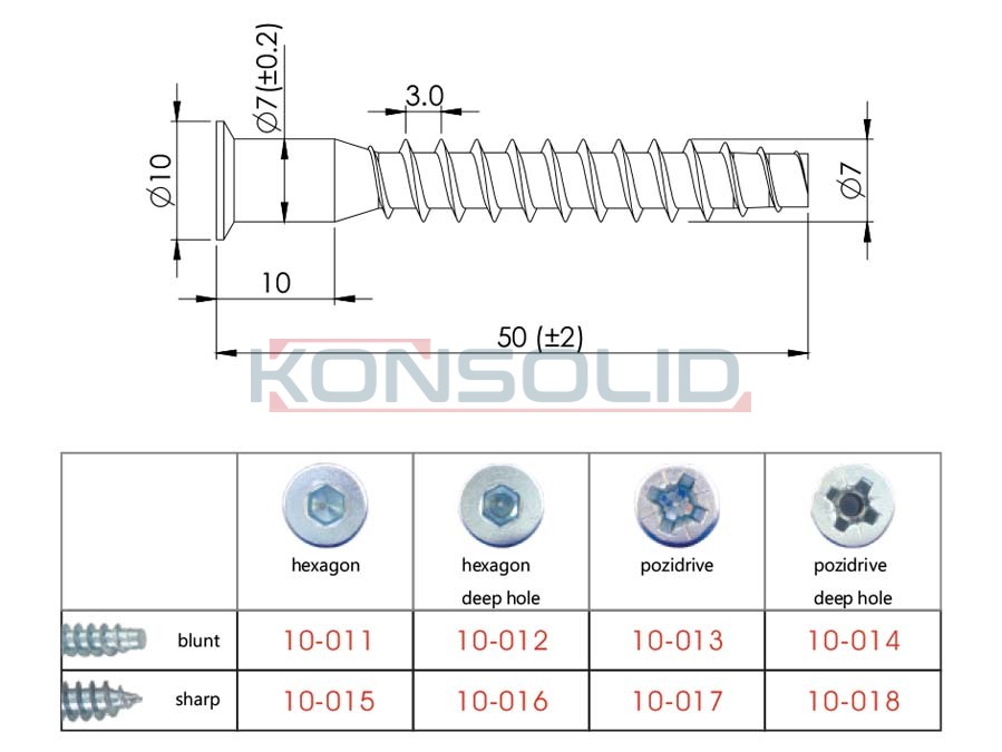 KSLJ-001-63-40-PB40mm, pozi/blunt Detaylar: pozi / künt Uzunluk (L): 40